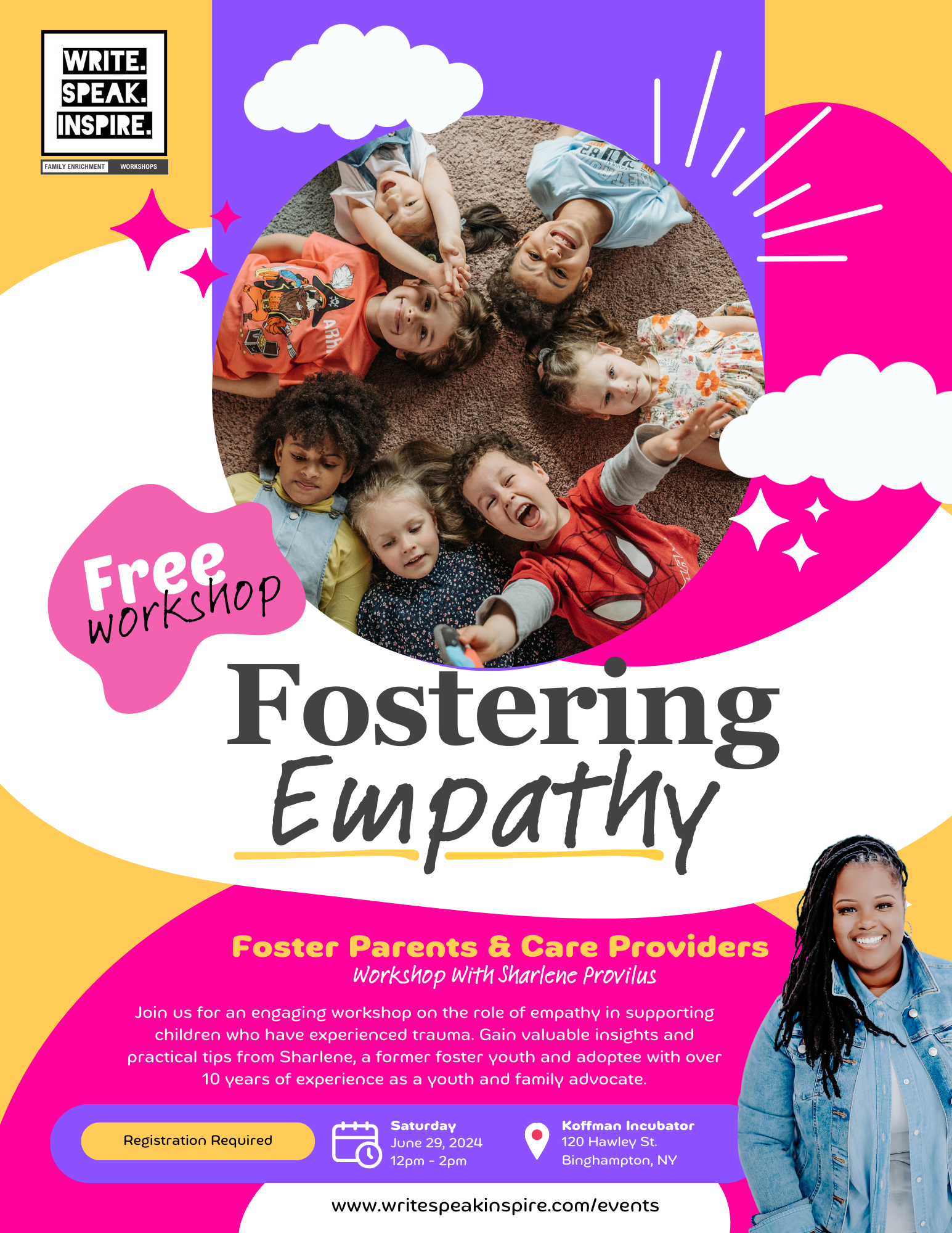 We understand the amazing commitment and love you bring to the lives of foster children, and we deeply appreciate the challenges you face. To support you in this incredible journey, we're excited to invite you to "Fostering Empathy" – a special workshop designed to help you build even stronger, more empathetic connections with the children in your care, especially those who have experienced trauma.